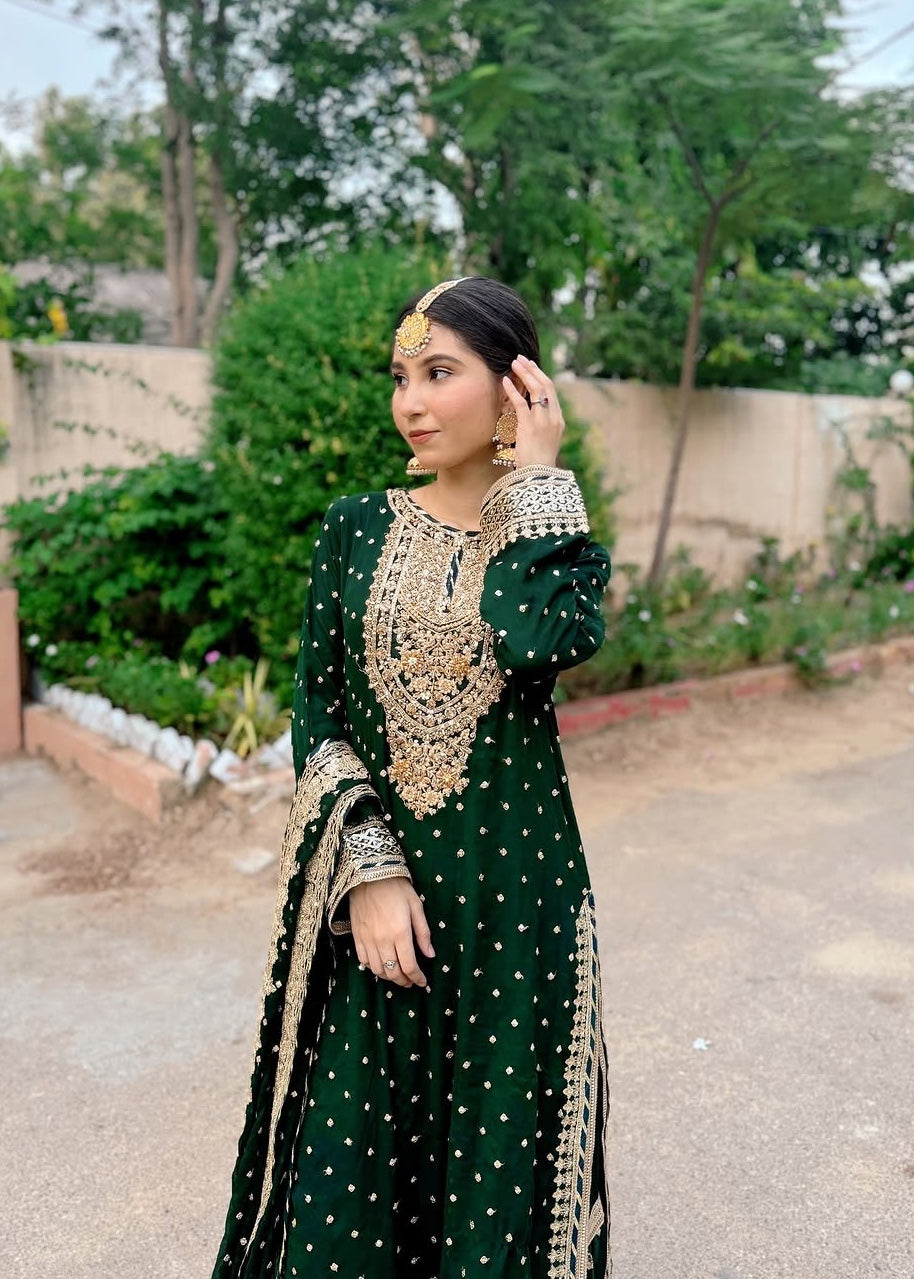 Sajal Ali Gharara Bottle Green