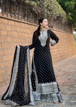 Additional Description:Â FULL HEAVY SEQUENCE EMB SHIRTnGHARARA & DUPPATTA nNECK HAND EMBELLISHMENT nBACK EMB WITH FANCY DORInn