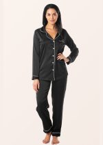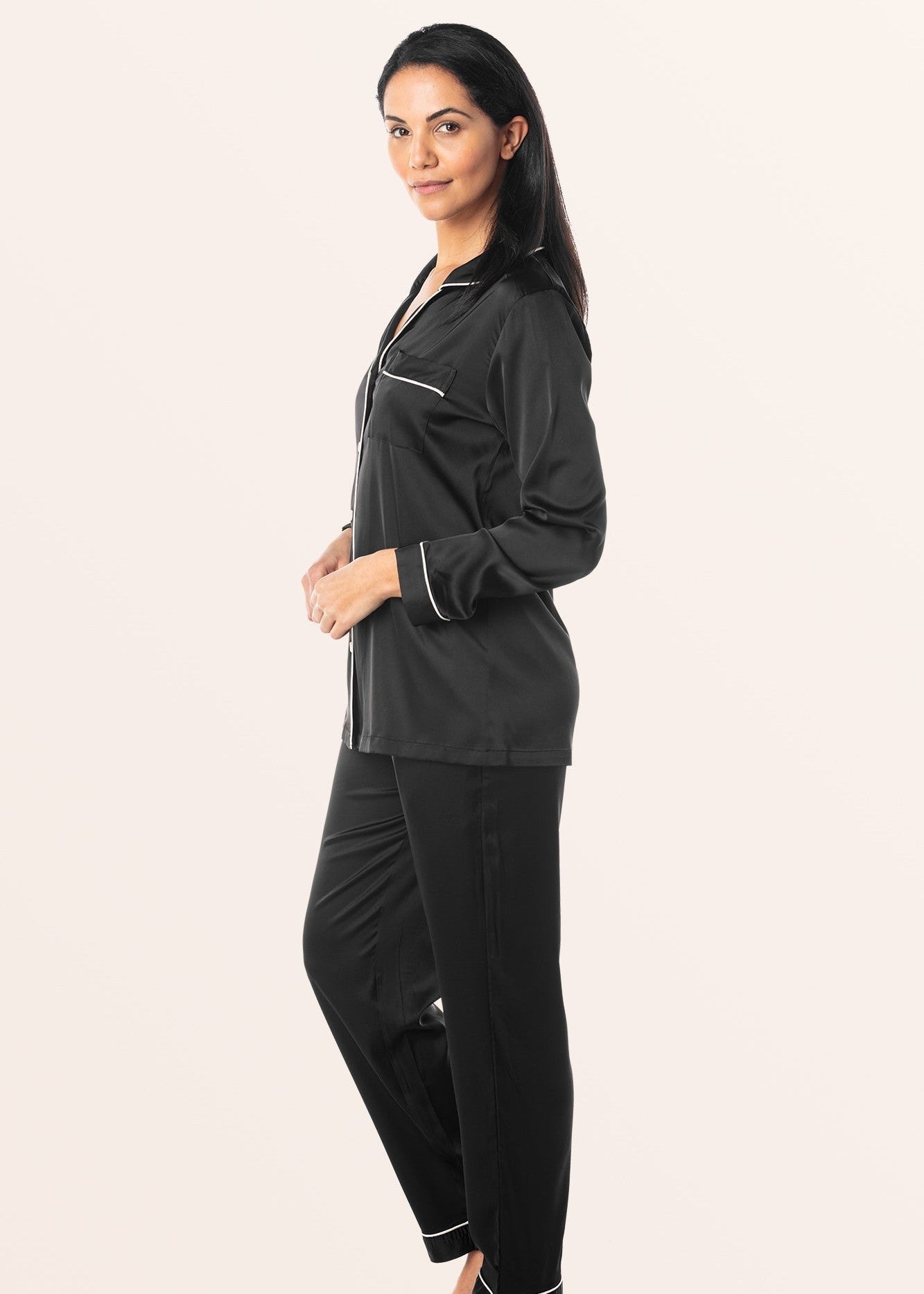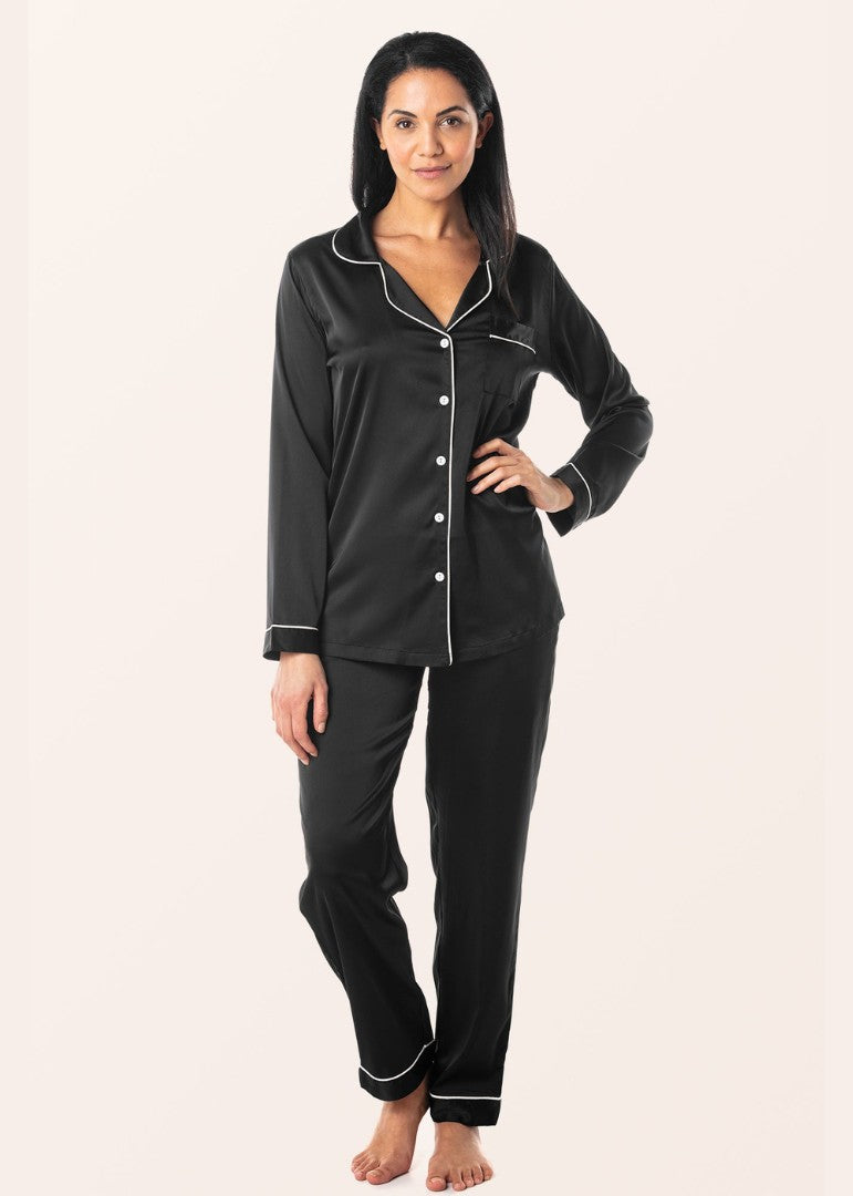 Sajiero Silk Pajama Suit – Pearl – Black