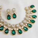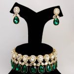 Additional Description:Â Stone: Synthetic/ImitationnnColor Variants: EmeraldnnMetals Type: Copper/AlloynnWeight: 101gnnCoker Length: 09 Inch nnTops Size: 3cm x 1cmnnGender: WomennnPlating: Golden Electro Plated nnType: Formal/PartynnPackage Included: 1x Set of Choker set include, 1x Pair of Topsn