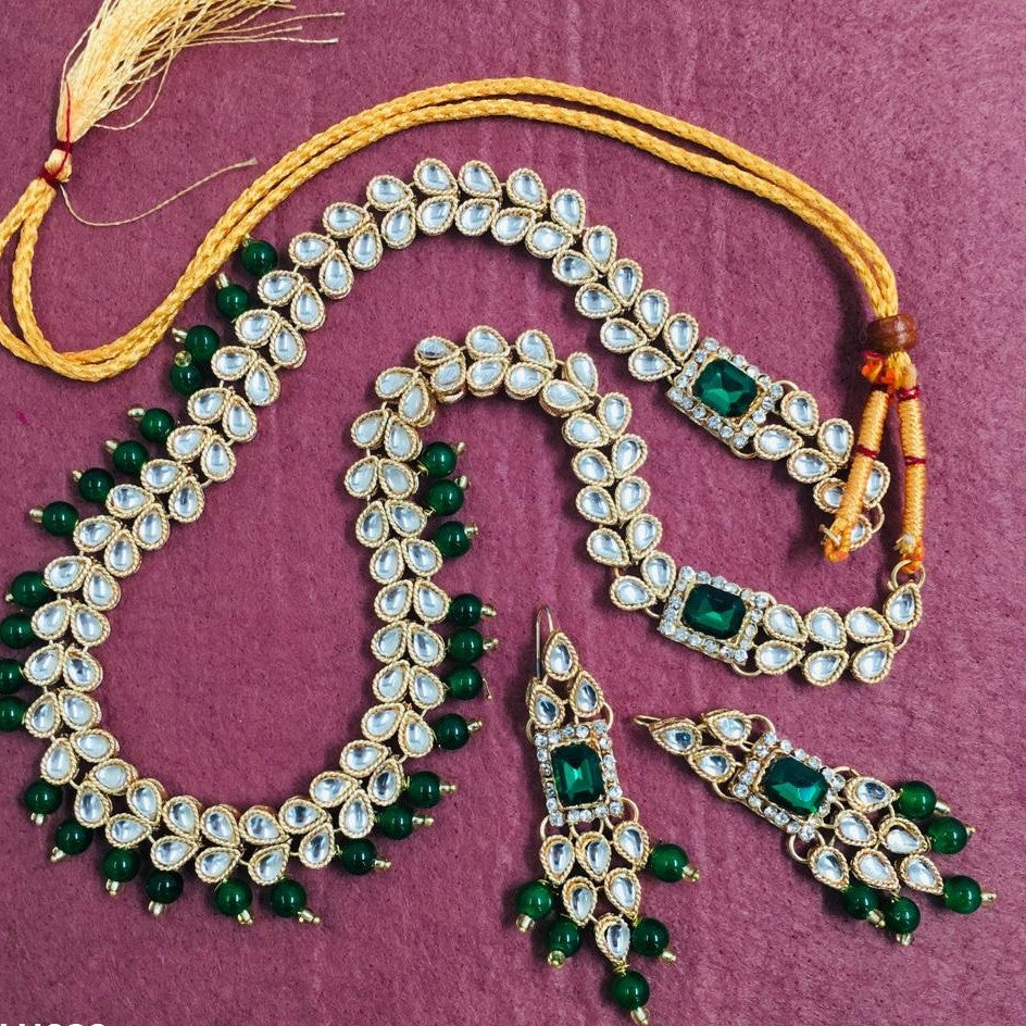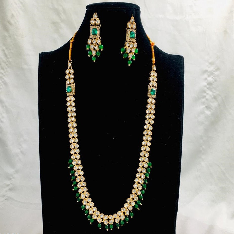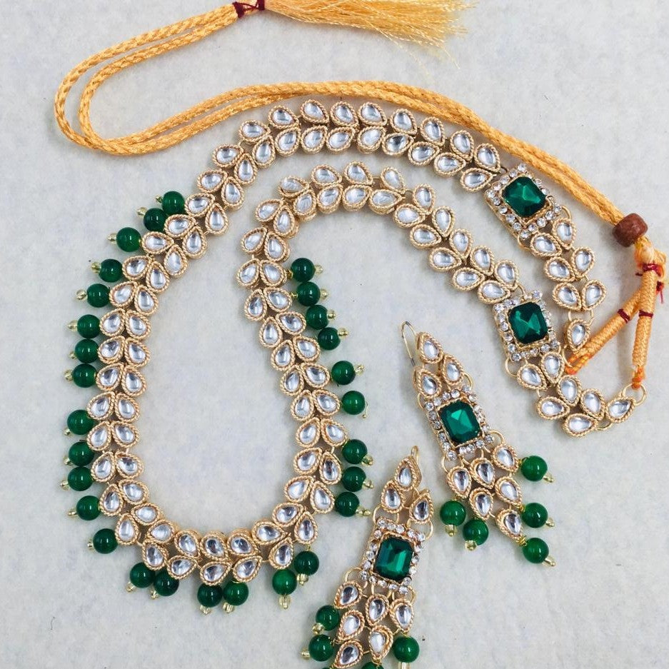 Additional Description:Â Stone: Synthetic/ImitationnnMetals Type: Copper/AlloynnWeight: 123gnnShape :Tear nnMala Length: 24Inch nnEarrings Size: 6cm x 2cmnnGender: WomennnnPlating: Golden Electro Plated nnType: Formal/PartynnnPackage Included: 1x Piece of Mala, 1x Pair of Earrings n