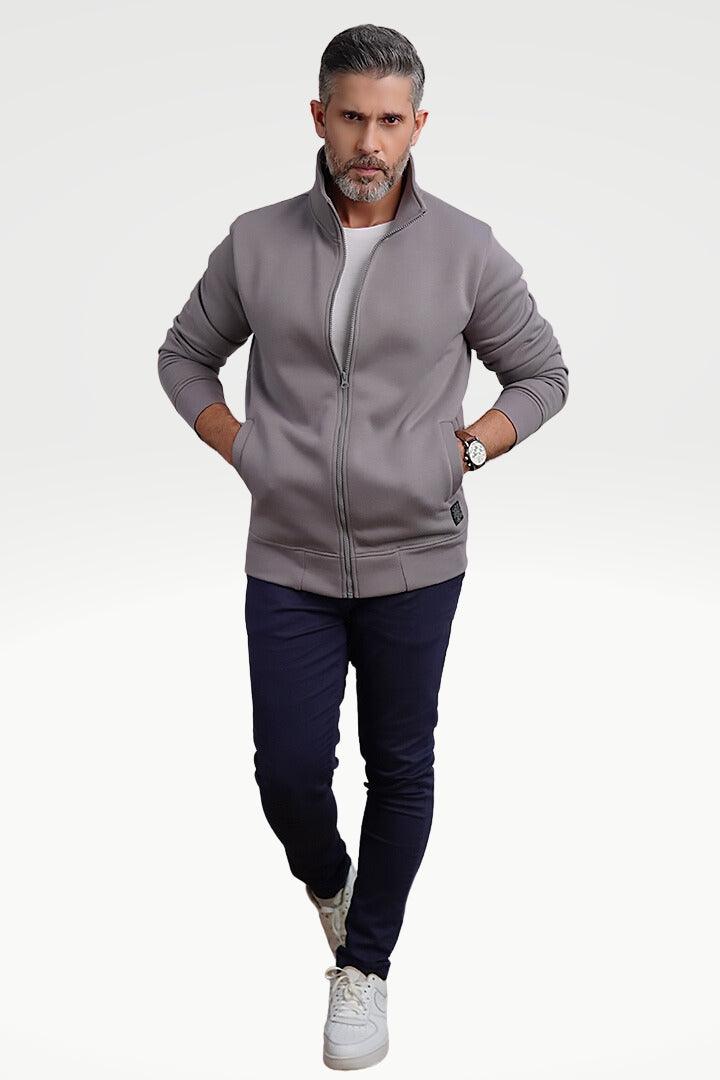 Additional Description: Introducing our Standup Collar Fleece Zipper Jacket: the perfect blend of style and comfort for the colder seasons. Crafted with meticulous attention to detail, this jacket combines a modern, stand-up collar design with the cozy warmth of fleece fabric with flexibility. The front zipper closure ensures ease of wear and allows you to adjust your comfort level, while the stand-up collar adds a touch of sophistication to your look., Color:Grey, Size & Fit, Model height:5’10 feetModel’s Weight:78 KgModel’s Chest:43Model Wears:Mn