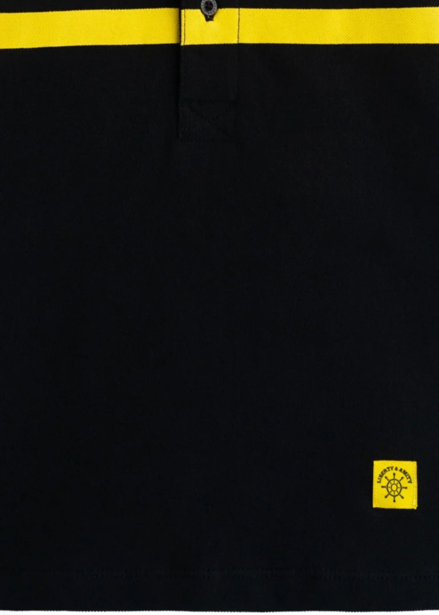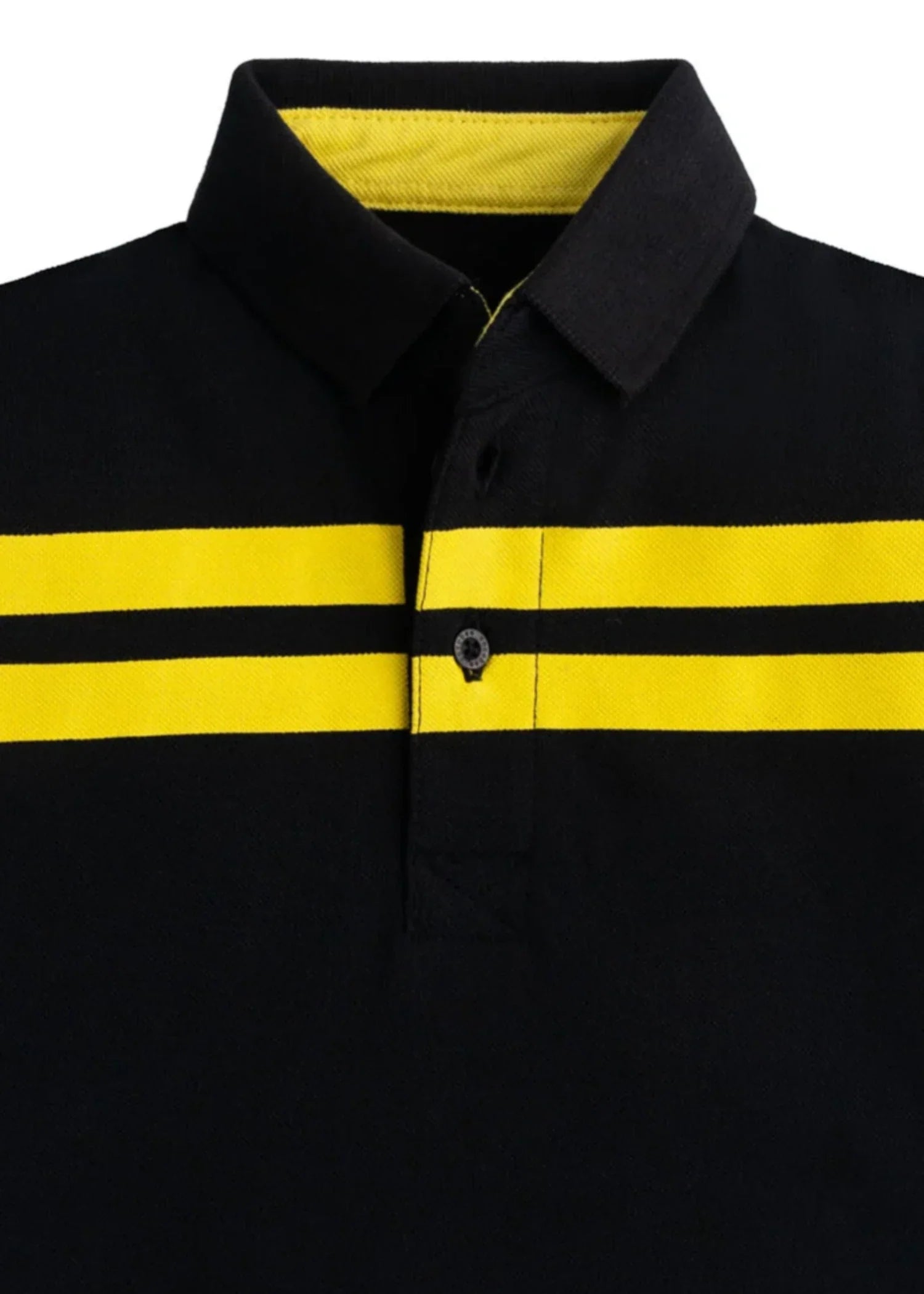 Additional Description:Â This sleek black polo shirt having contrast striping at chest makes it a perfect outfit option for summer.n