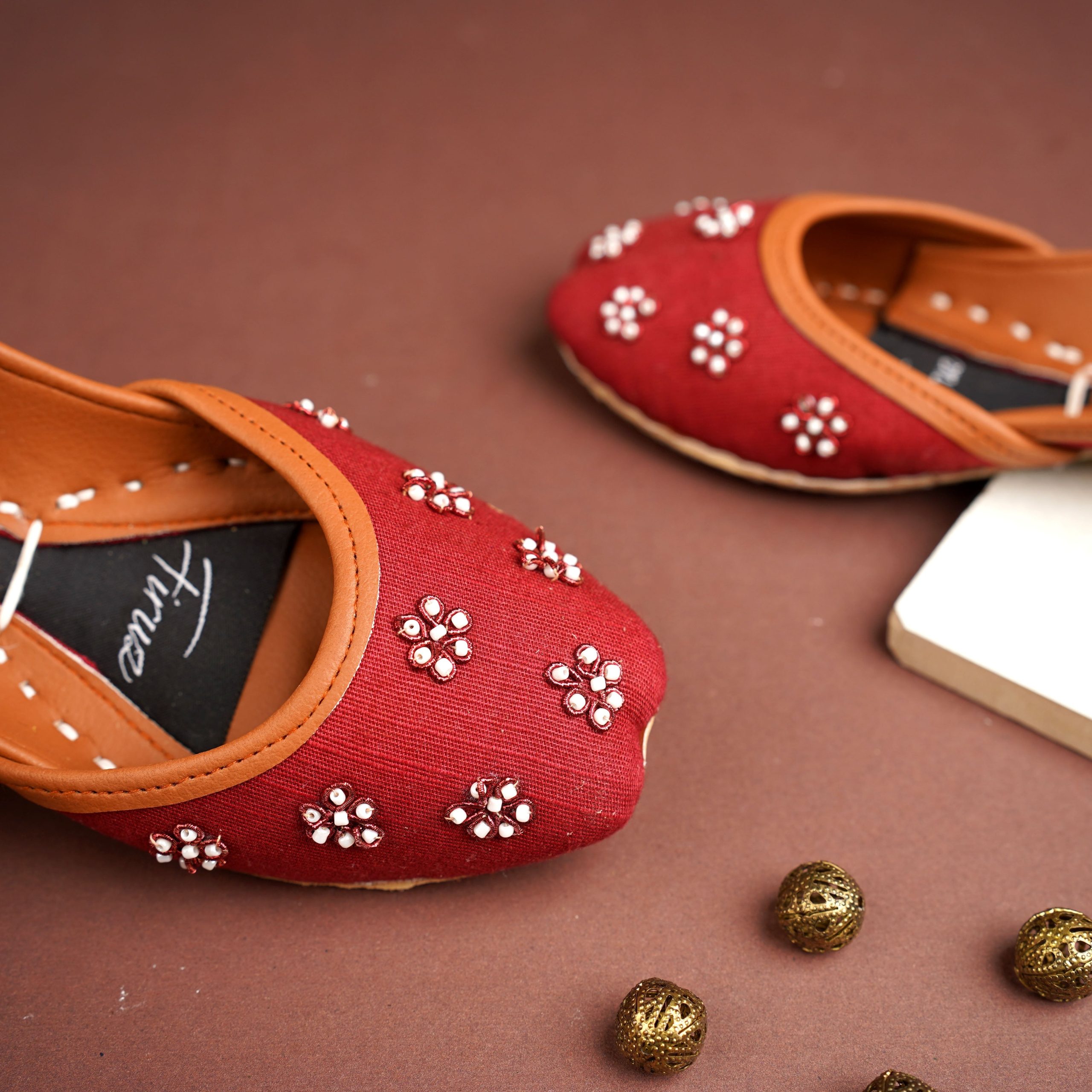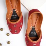 Additional Description: Sole: Upper is of Banyan over a base of Leather.nnHandwork: YesnnNote: Each handcrafted piece is unique; as with all handmade products there can be slight variations in color and finish. Choose a snug fit for yourself as leather expands slightly with multiple uses and conforms to your feet. Please consult our size chart before ordering. Rest assured, our shoes are true to size.nnDisclaimer: Product colour may vary due to lighting, monitor and display settings.nnCleaning: Gently wipe with slightly damp cloth. Best to avoid getting them wet. Colours used are water-resistant and won’t come off unless rigorously used. Put away your khussas when dry only.n
