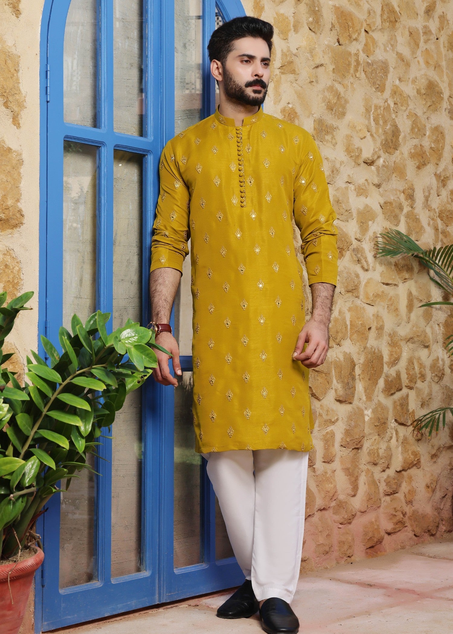 Additional Description:Â Men’s Formal Kurta with Computer Embroidery along with Off White Pyjamannn