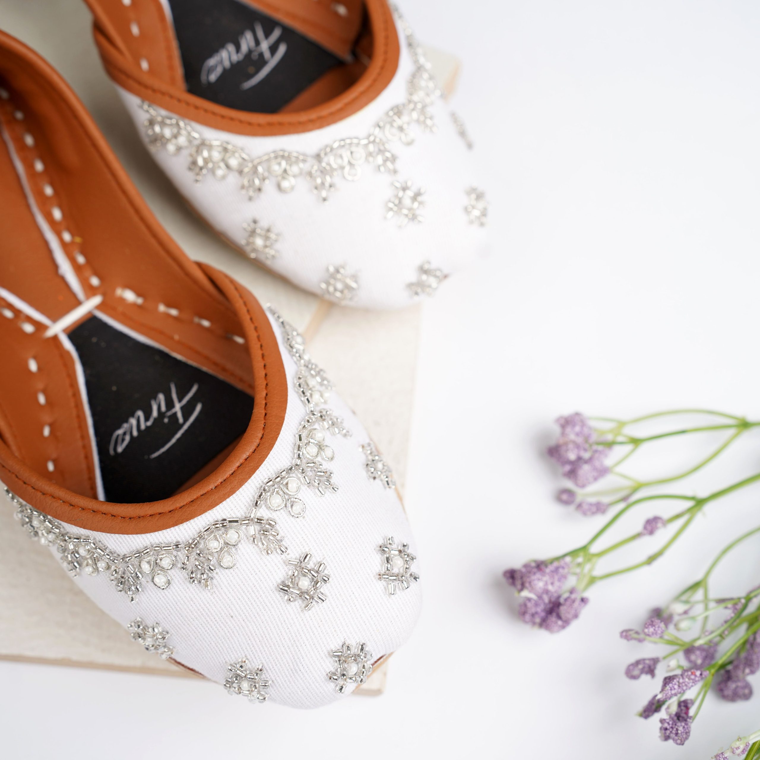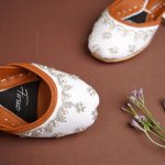 Additional Description: Sole: Upper is of Banyan over a base of Leather.nnHandwork: YesnnNote: Each handcrafted piece is unique; as with all handmade products there can be slight variations in color and finish. Choose a snug fit for yourself as leather expands slightly with multiple uses and conforms to your feet. Please consult our size chart before ordering. Rest assured, our shoes are true to size.nnDisclaimer: Product colour may vary due to lighting, monitor and display settings.nnCleaning: Gently wipe with slightly damp cloth. Best to avoid getting them wet. Colours used are water-resistant and won’t come off unless rigorously used. Put away your khussas when dry only.n