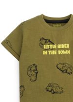 Additional Description:Â An olive-toned jersey tee adorned with a bold chest graphic, tailored for comfort and everyday urban adventures.nnnn